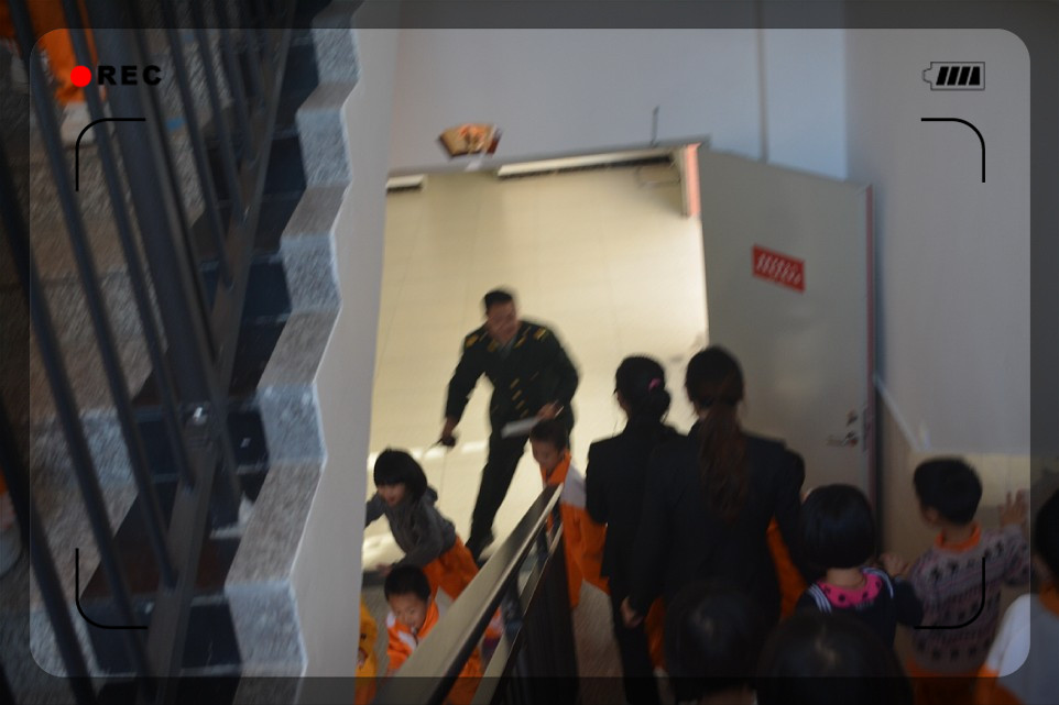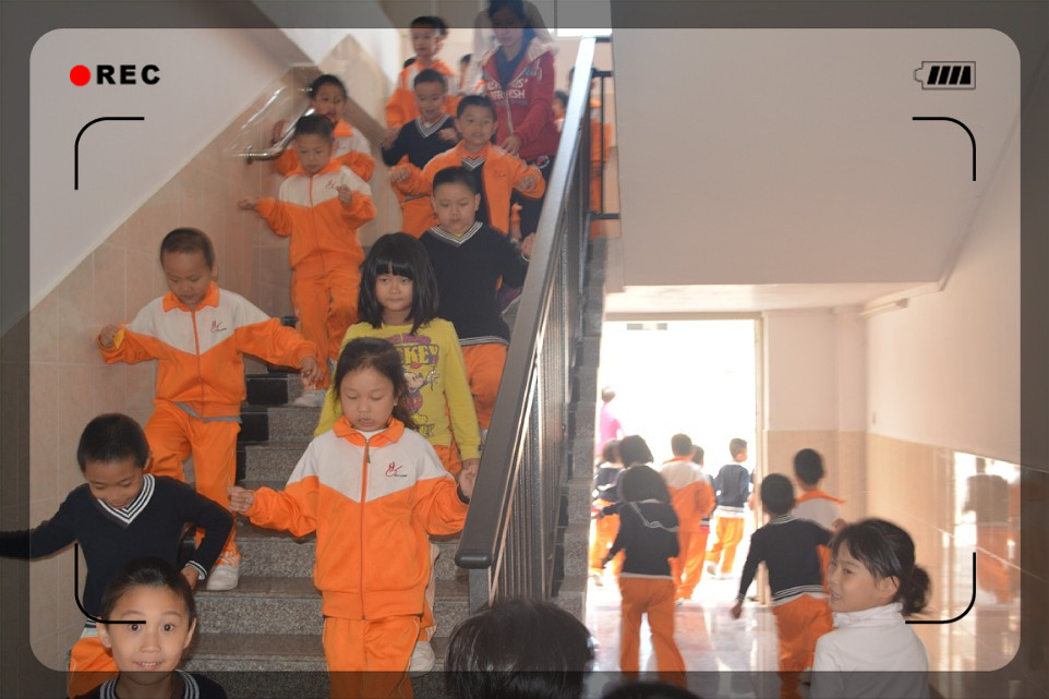 此次疏散演练确保安全进行,活动前德育处利用校园广播向全体学生进行疏散教育,重点教育学生认识灾难预警信号,告诫学生在紧急疏散时,如遇鞋带松绑要及时出列到人少的角落紧急处理,鞋掉了的时候,要丢弃不管,切勿弯腰捡拾。以上班主任进一步教育落实,校警、生活教师分布在楼层拐弯处,指导学生有序疏散。