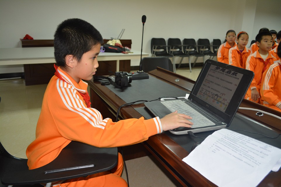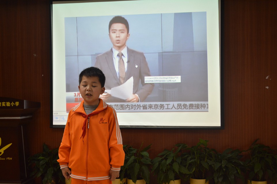 四(1)中队给大家展示的是学习时代先锋、学习身边榜样为主题的中队活动。他们利用现代化科技融入到活动中,并能利用现代媒体的快捷来接触时事新闻,利用现代的元素及时的反馈和表达自己的看法。