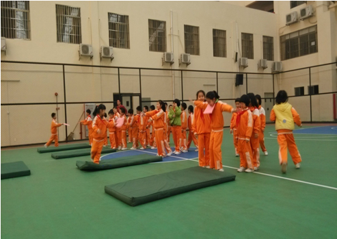 课前活动,钻山洞游戏充分调动了学生学习热情和积极性。“一蹲二撑三低头,团身滚翻像圆球!前滚翻学习开始了……”孩子们认真地聆听着老师的讲解。孩子们一番仔细观察模仿之后,各组小老师带领同学们展开了练习。不一会,小组内发出了不同的声音。