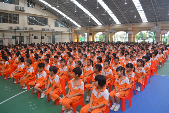 7月4日,广州市花都区黄广小学全体师生汇集室内体育馆,隆重举行2013-2014学年度第二学期散学典礼。