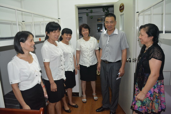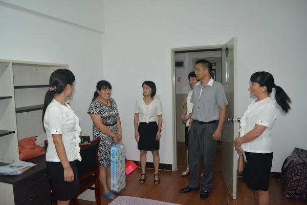 晚上7:00,范小梁常务副校长、黄莉副校长、李淑霞主席、张福兴主任一起深入“新人”宿舍,了解“新人”生活状况并现场办公,对他们生活中急需解决的问题一一落实。