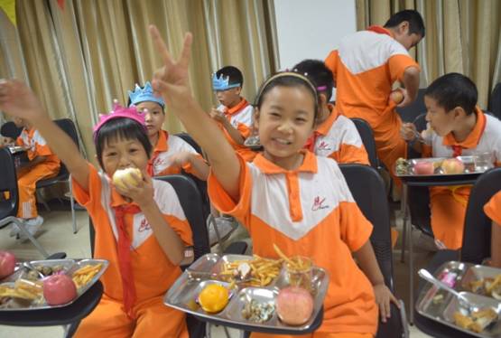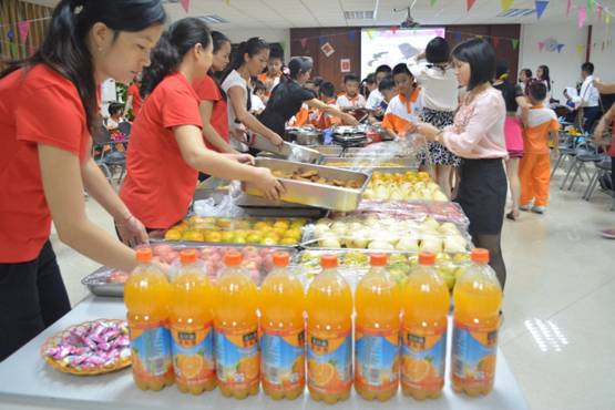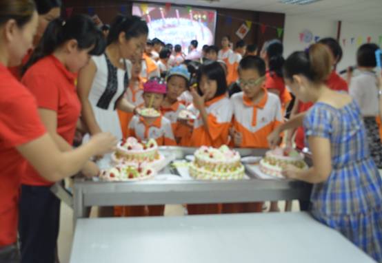 丰盛的自助餐、美味的生日蛋糕让孩子们垂涎欲滴、引得阵阵尖叫声;