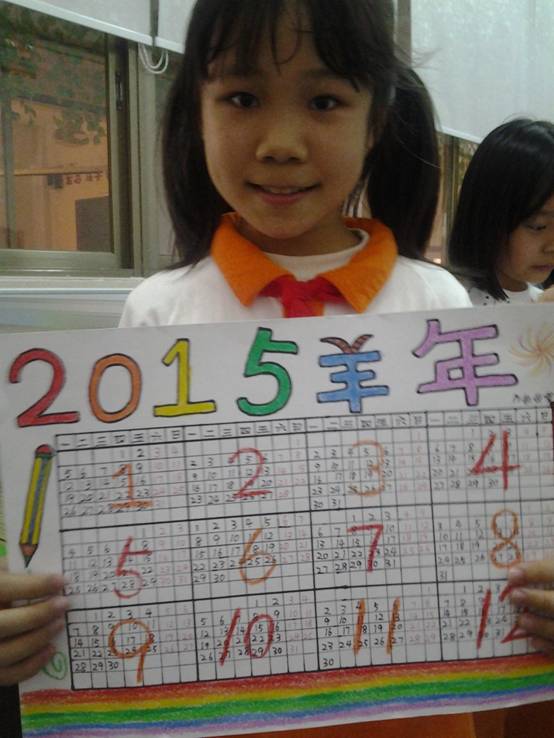 对于即将到来的2015年,开展制作年历卡活动,特别契合时机。对此,孩子们的热情都很高,各色卡纸、各样版式,一根线条,一处标注,尽显孩子的认真与用心。