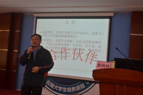 7日,四位优秀班主任代表聆听了东莞市教师进修校张润林老师主题报告——“家校合作”。张老师针对家长与学校、家长与老师之间的关系进行了细致的剖析,他认为家长与老师之间的关系是“合作”关系(用“配合”一词有欠妥当),并详细指导了如何建立家长学校,如何开展家长培训,以及家长学校的培训流程等。