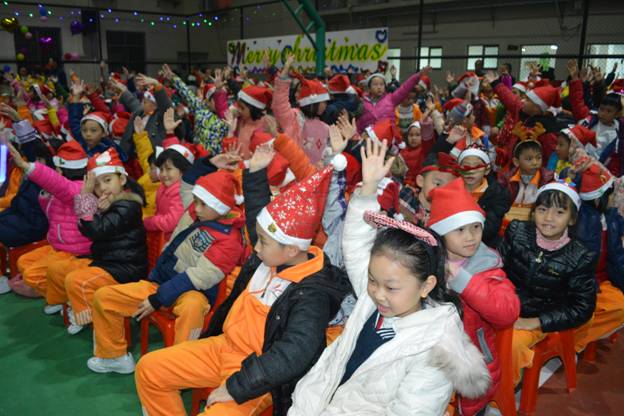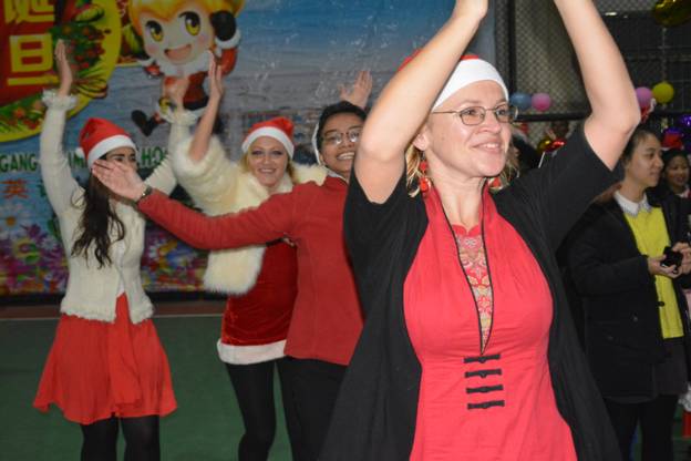 黛绿发光的圣诞树、红白相间的圣诞帽、慈祥和蔼的圣诞老人、琳琅满目的圣诞礼物、全场师生尽情释放的热情……构筑了一个美丽的圣诞狂欢夜。