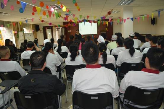 生活教师、食堂员工在大会议室集中观看了由广州市花都区卫生监督局监制的“学校食堂食品安全管理与操作规范”为主题的宣教视频。通过此次培训,促进食堂从业人员、生活教师对食品卫生工作资质要求的认识,提高卫生安全意识,规范食品卫生从采购到出餐一系列过程的操作行为,学习食品卫生安全事故应急处理措施。