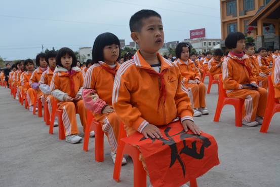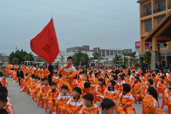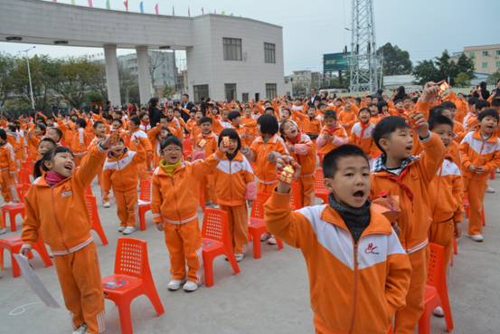 还是六年级同学稳重,然而也“任性”,却也为全体弟弟、妹妹做好了表率。看,六(1)、六(2)班两支队伍,高擎红旗,从人群两侧奔向舞台,满腔弘志,豪情誓师。“相信自我,不断超越!挑战自我,追求卓越!”字句铿锵,响彻云霄。