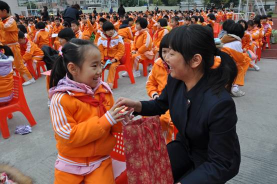 在孩子们享受着自己得意作品时,学校全体领导、老师为每个孩子送上期待已久的红包,捧着凝聚着老师们发自内心的、沉甸甸的礼物,抑不住内心的激动与喜悦。