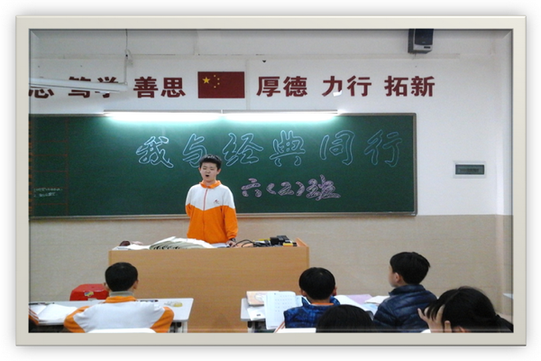为了让学生“读千古美文,传华夏文明;诵中华经典,做少年君子”,3月9日,语文科组继第一周的“成语想像画”之后,紧接着在第二周举行“亲近美文,走进经典”朗诵比赛。