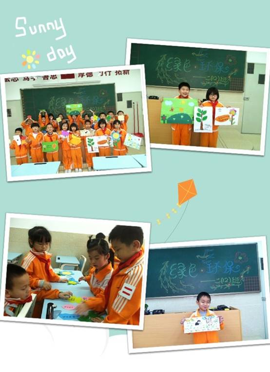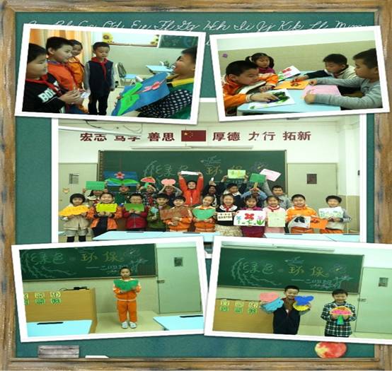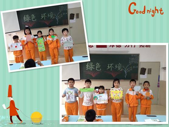 活动中,所有的孩子参与热情高涨。孩子们现场交流对环保概念的认识,展示自己设计的标语作品,并对自己独创或借鉴的作品进行自我评价、自我诠释。活动现场涌现出大批优秀作品: