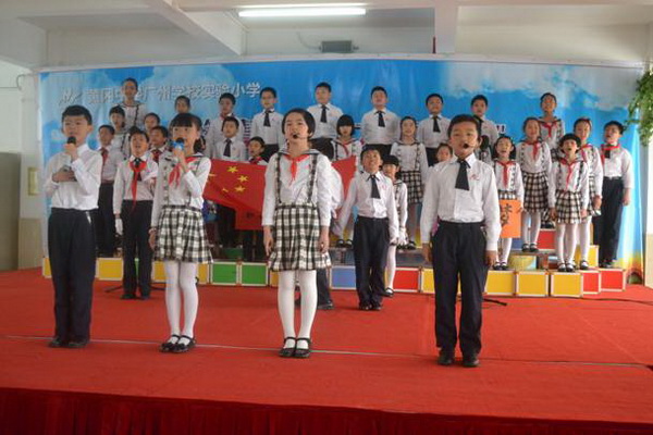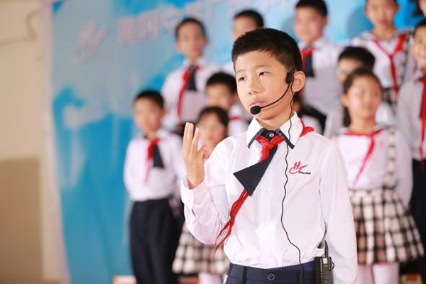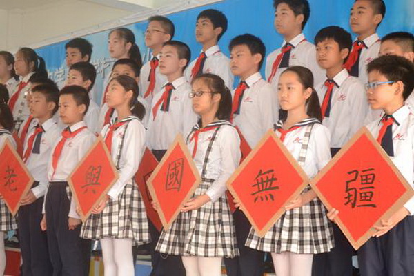 “少年智则国智,少年富则国富,少年强则国强……”五(2)班的孩子们伴随着铿锵有力的音韵,时而卧倒、时而跃起;时而挺拔如峰,时而行云流水,孩子们通过抑扬顿挫的声调,将梁启超的《少年中国说》演绎得淋漓尽致,赢得台下的观众阵阵喝彩。