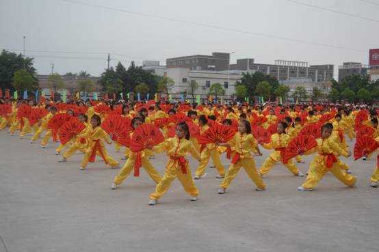 随着一声清脆的炸响,400多把太极功夫扇悠然舞动,齐刷刷的开扇声,刚柔相济,响声震天……
