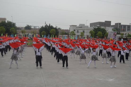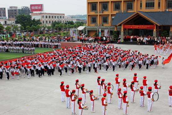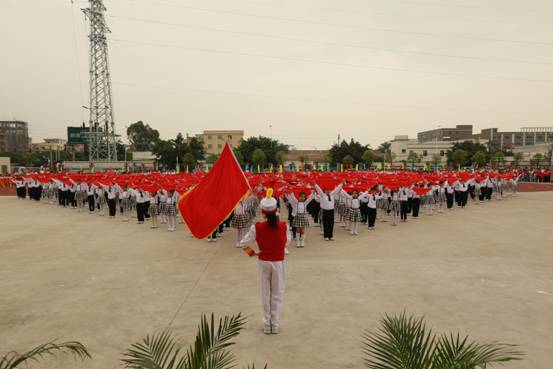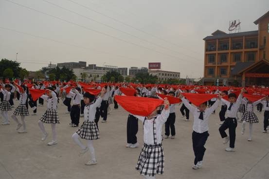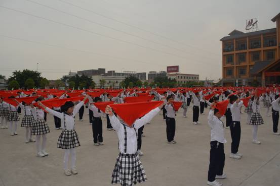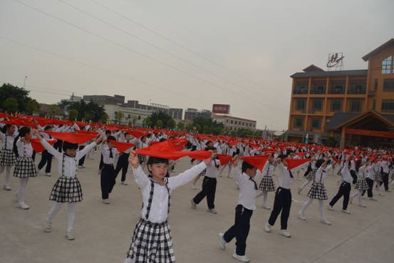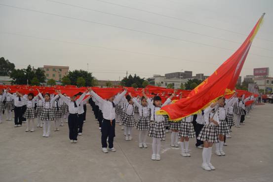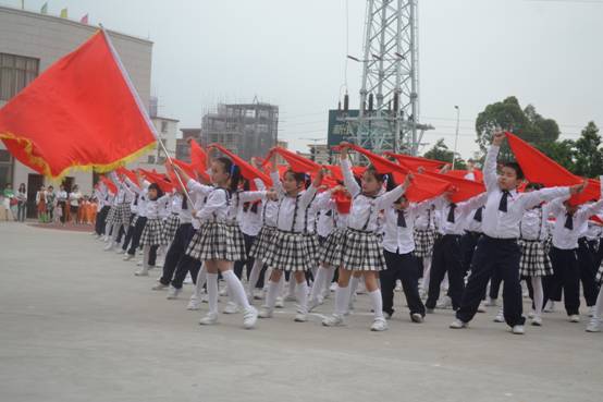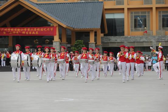 嘹亮的号角,铿锵的鼓点,变幻的队列、飘扬的红领巾……广州市花都区黄广小学全体师生正以激越的豪情,迈步在艺术人生的道路上。