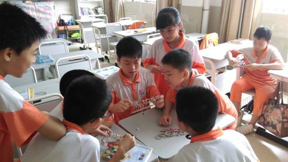 赛前活动推广期间,九连环大受五年级孩子喜爱。孩子们课间只要一有时间,就拿出九连环来研究琢磨。每个孩子第一次解开九连环时,均兴奋得大呼小叫,通过智慧思考后所获得的成功体验让孩子们格外开心。