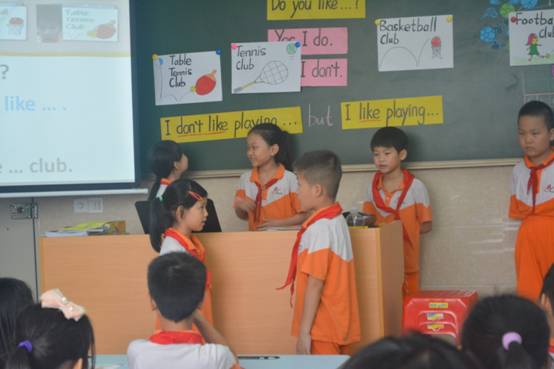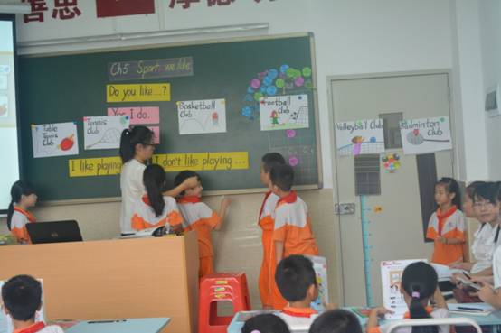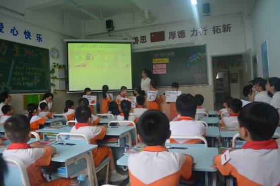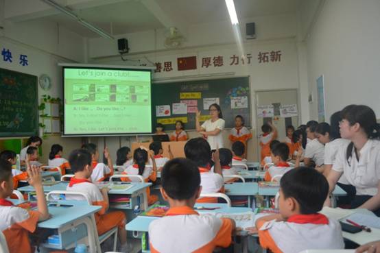 首先鲁宗干老师和黄广小学英语科组21名教师一起,在二(10)班分享了刘朵老师的一节研讨课。刘朵老师以“Sports we like”为话题,以英语口语活动为基础,结合广州版教材关于运动的话题进行有效整合,孩子们在刘老师的指导下,互动深入,兴致盎然。