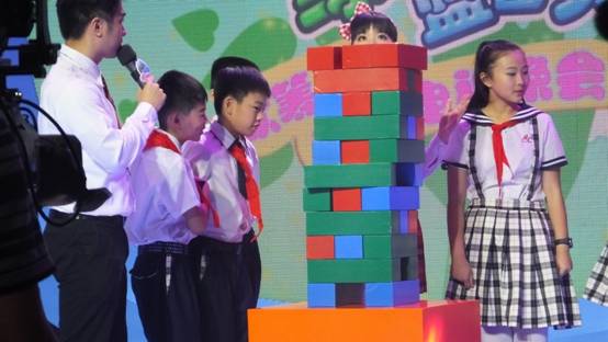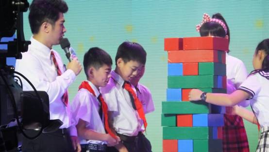 最后举行的“拆木方”等互动拓展活动,更是展示黄广学生参与能力与实践能力。“拆木方”活动是所有参加演出节目团队共同参与,黄广小学男有张权彪、女有李思思,他们以敏捷的反应能力,总是领先于其他团队孩子,成功拆下一个又一个木方。他们沉浸活动之中,像平常一样从容潇洒,毫不顾忌摄像机在身边晃动。