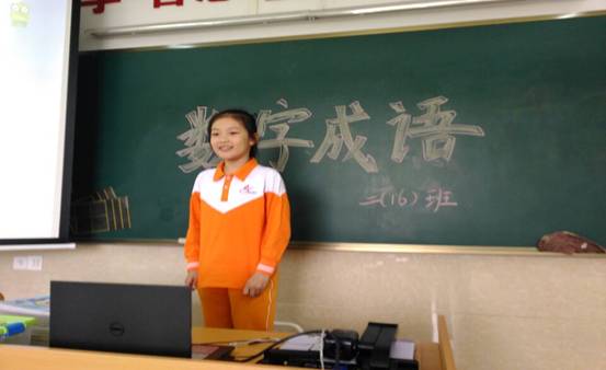活动中,孩子们纷纷上台说出自己知道词语和同学们分享起来: “一丝不苟、两全其美、三心二意、四面八方、五光十色、六六大顺、七嘴八舌、八仙过海、九牛一毛、十全十美……”二(16)班的于恬睿同学一口气说完一到十开头的词语,赢得同学们一片叫好。
