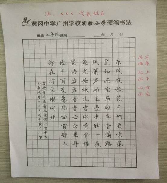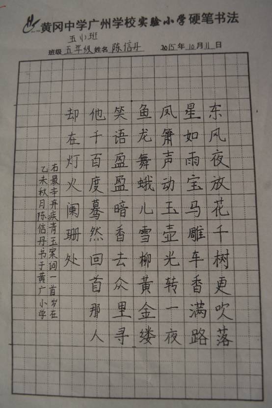先上图一张,这是黄广小学书法教师陈建祥范作,孩子们称为“大师”的大作。