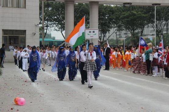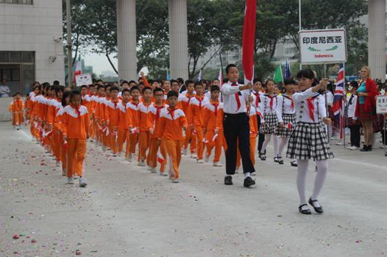 各班方阵入场式上,黄广萌娃尽情演绎世界35个国家不同的人文特色和民俗风情。