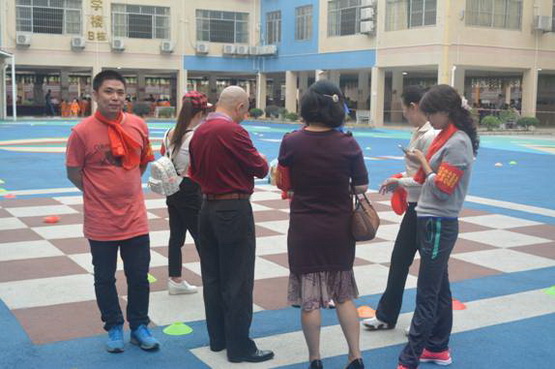 家长志愿者组织孩子们有序参赛。