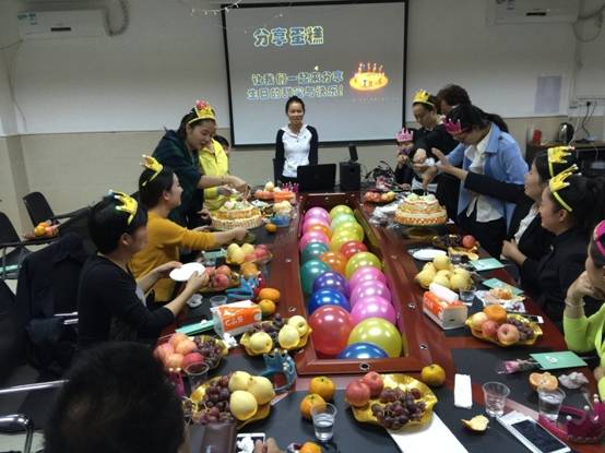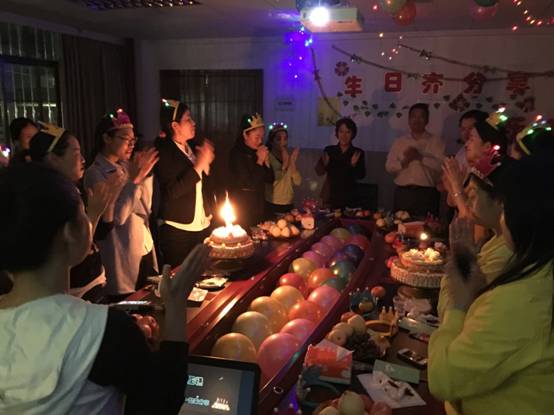 教职工集体生日会传递着学校对每位同事浓浓的关爱,这种真情的关怀播洒在校园每一个角落,使黄广大家庭形成了强大的凝聚力,每一个黄广人一起团结拼搏,一路成长丰收。