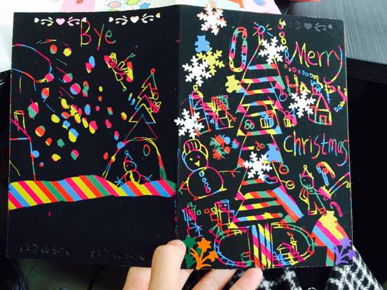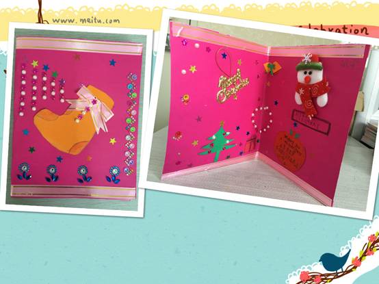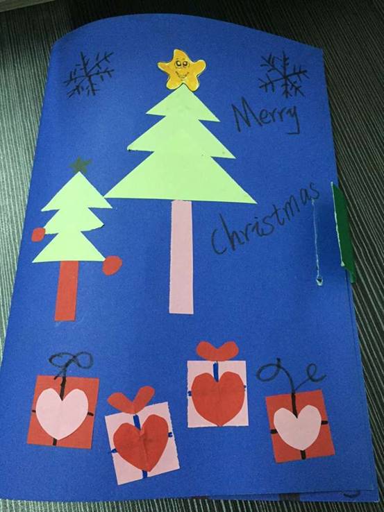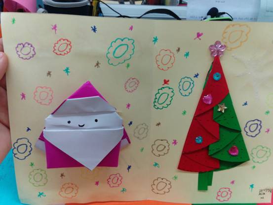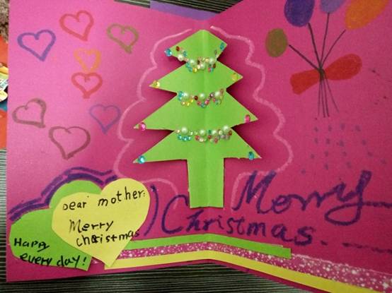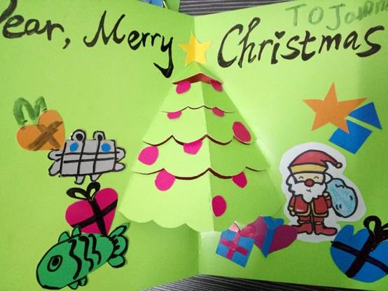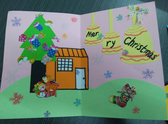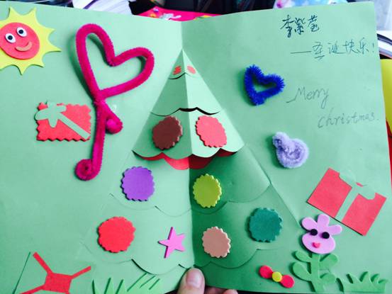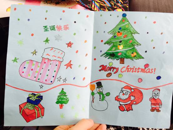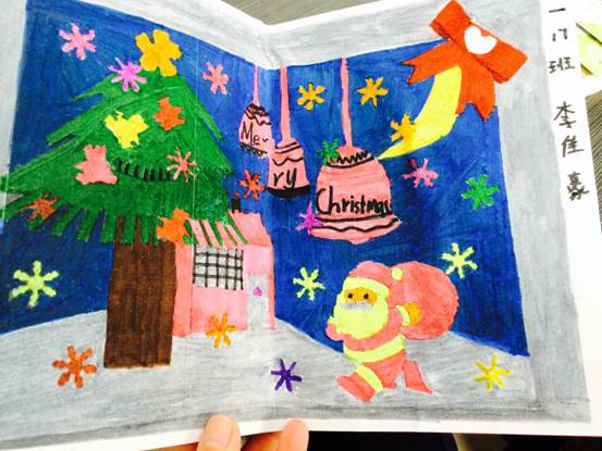 在本次活动中,孩子们亲手设计绘制出一张张、一幅幅、画面绚丽多彩、创意花样百出的圣诞贺卡。他们用自己的独特视角描绘出一个个动人、充满童趣的圣诞世界,许多富有创意的立体圣诞贺卡更是夺人眼球,孩子们的心灵手巧令人赞叹不已。