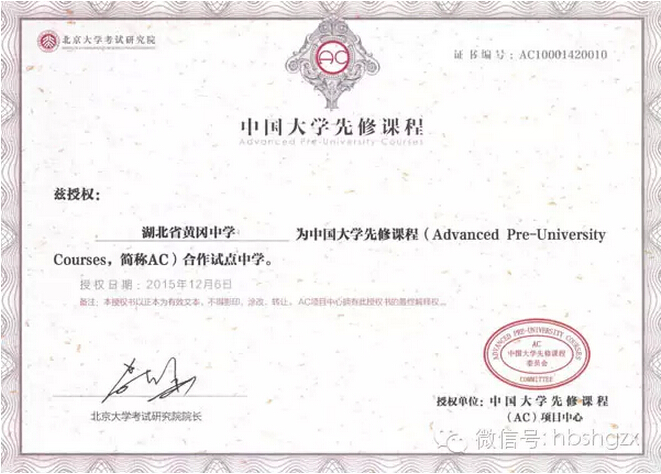 中国大学先修课程(Advanced Pre-University Courses,简称AC)是由北京大学考试研究院支持建设的,在全国部分中学选修课体系内开设的大学程度的选修课。