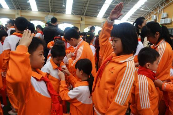 12月11日,广州市花都区黄广小学举行少先队入队仪式,一年级352名同学正式成为一名光荣的少先队员。