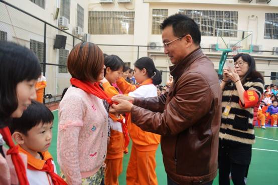 入队仪式现场还举行了建队仪式,聘请了一年级的班主任为各中队辅导员,相信在他们的带领下,黄广小学的少先队阵地建设将更上层楼,中队活动开展得更加丰富多彩。