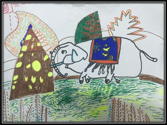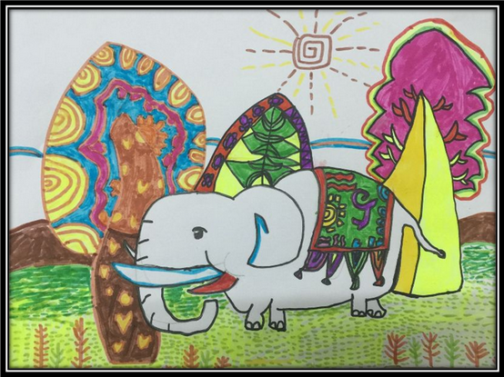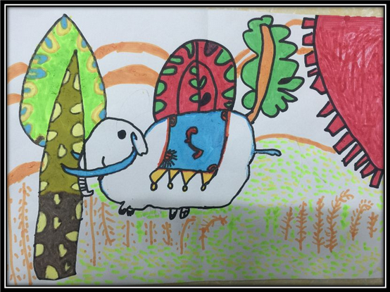 虽然孩子们的画还很稚嫩、粗糙,近乎天马行空,但是半年里他们从学习如何握笔到学会画浪线、直线,学会构图、上色,已经是一个了不起的蝶变。