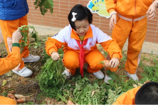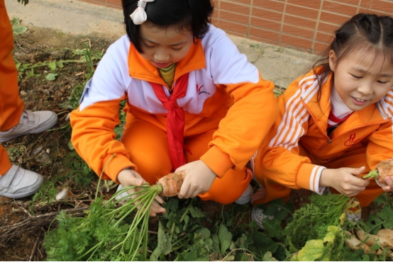 1月14日,广州市花都区黄广小学学生劳动实践基地——各班自留菜地丰收了,孩子们在老师的带领下,收获了亲手播种、浇水、施肥,守护、期盼了近一个学期的劳动果实,并带回家中与家长共同分享。