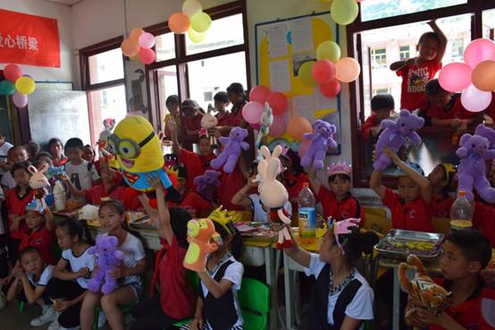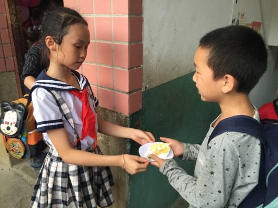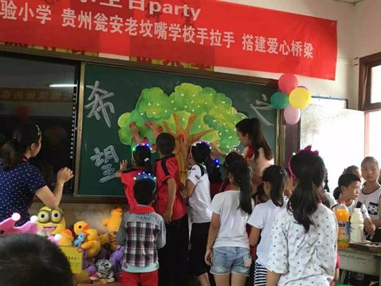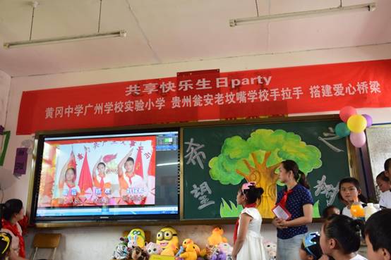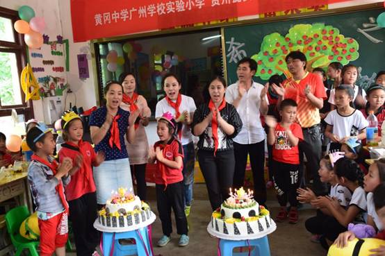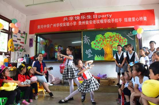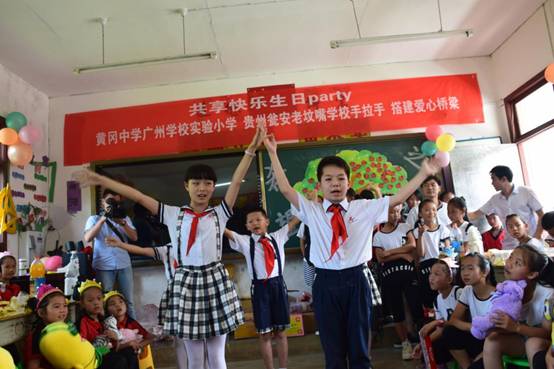 6月23日,广州市花都区黄广小学师生、家长代表一行10人,携全校师生在六一跳蚤市场义卖所筹的爱心善款来到了贵州省瓮安县老坟嘴学校,同该校师生共同举办了手拉手共享集体生日会活动。