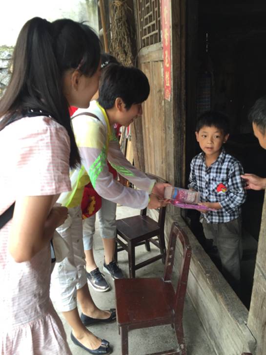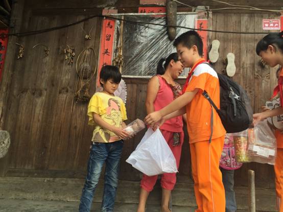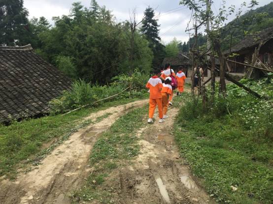25日,黄广小学一行在老师的带领下,开始去家访,走访的对象大多不集中,东一户,西一家。有的处于半山腰,有的却在连公路都没通的山顶,有时从一个学生家里到另一个学生家徒步要走两个多小时,但都能坚持家家到,户户落,热心地和家访的孩子面对面进行交谈,耐心地了解他们的日常生活,并送上礼品以及慰问金。
