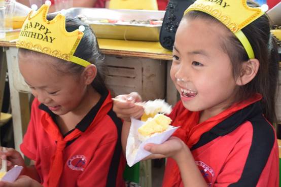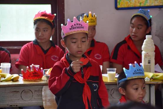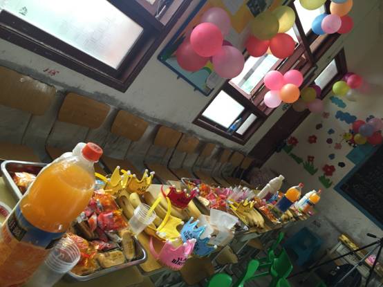 生日会如期开展,桌上的水果、饮料琳琅满目,孩子们的头饰闪闪发光。一只只彩色的蜡烛在手中燃起,每一根蜡烛代表一个心愿,一份祝福,一种希望。