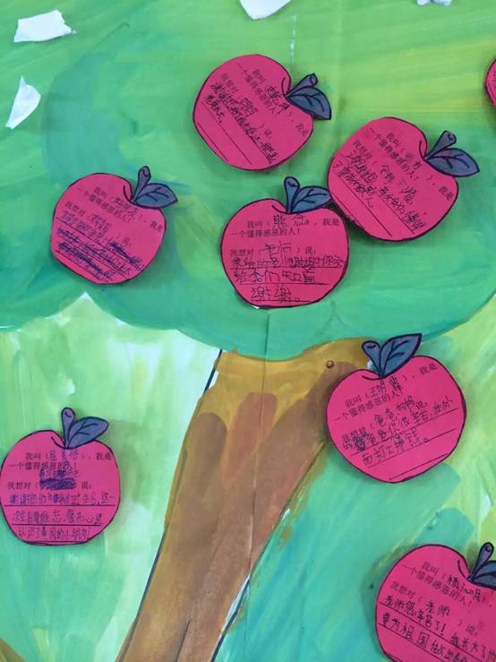 孩子们在愿望树上,留意一串串质朴、真诚的文字,是快乐、是特别、是新奇、是感恩……