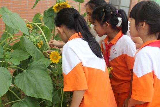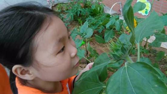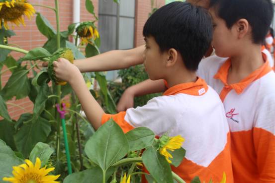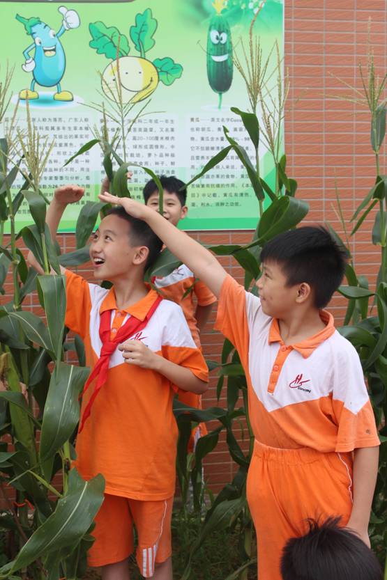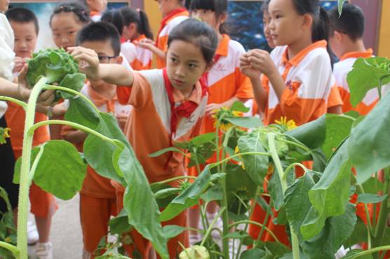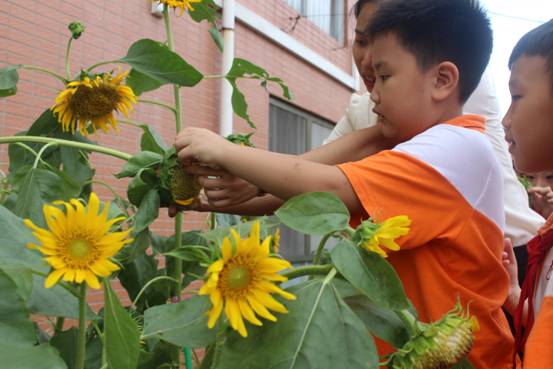 看着勃勃生机的玉米、花盘饱满的向日葵,有同学已经迫不及待地掰下一个玉米、伸手拔下几颗葵花籽,放在嘴里品尝它的味道——是自然纯美之味,更是劳动、丰收香甜之味。