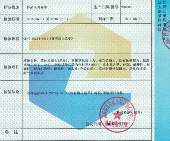 由国家体育用品质量监督检验中心出具的检测报告显示,各项指标按GB/T 20394—2013标准检验,所有检测项目合格。