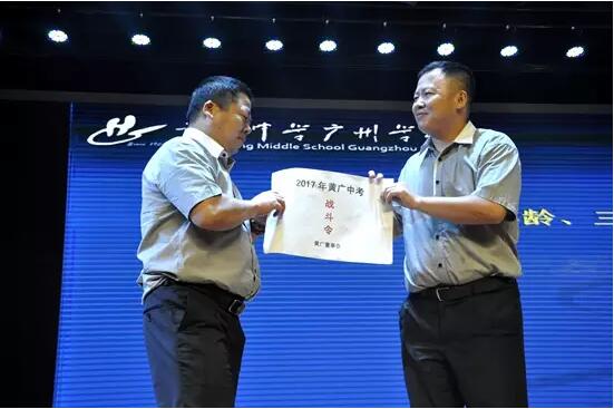 高三、初三年级主任分别从孙传华副校长、蒋晓明副校长手中接领“军令状”,现场承诺将在新一年的高考、中考上全力以赴,勇创佳迹。