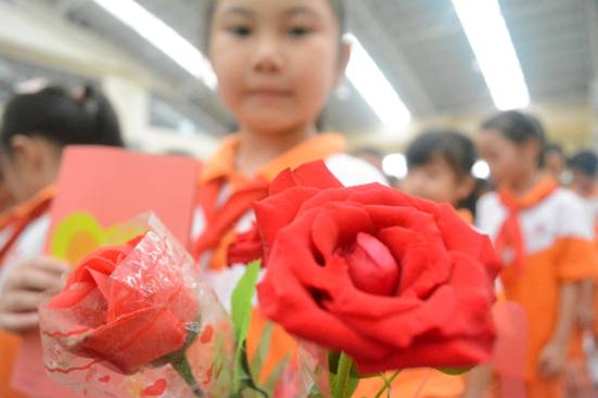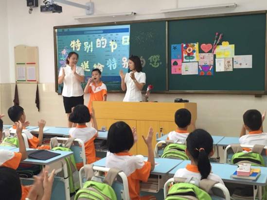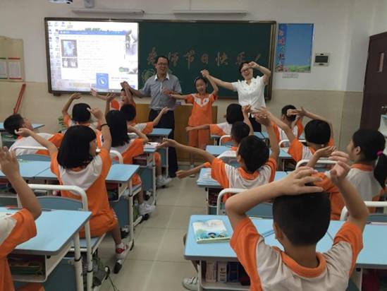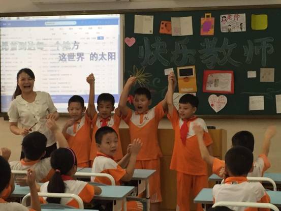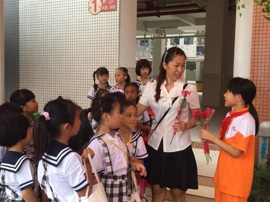 9月9日上午,广州市花都区黄广小学的孩子们自制贺卡、自编节目,用最朴素的方式感恩教师,从内心深处表达对老师纯真的节日祝福。