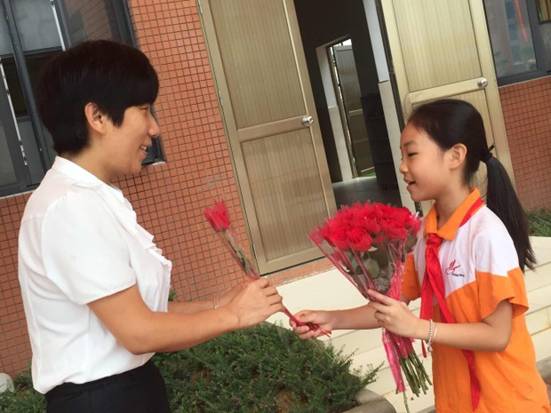 【一朵鲜花送教师】节日当天早晨,学校集体采购了鲜花,由学生代表送给每一位教师手中。一朵鲜花,一声祝福,迎来了老师们幸福、美好的一天。
