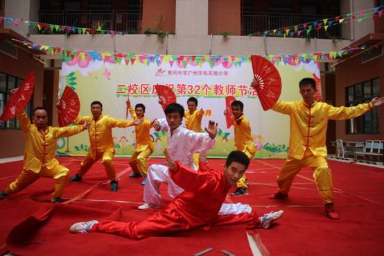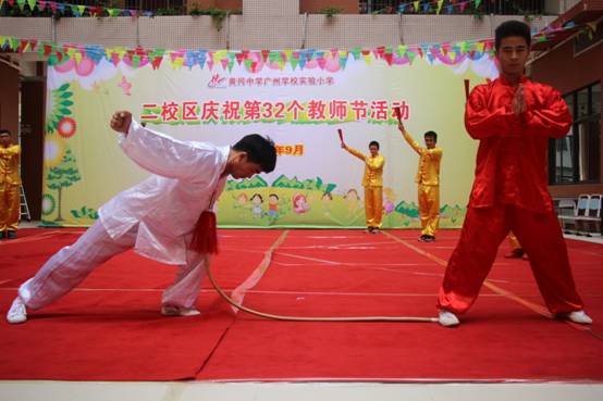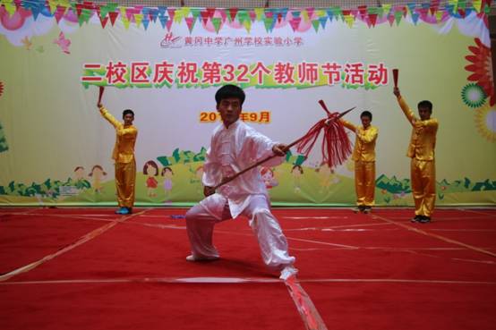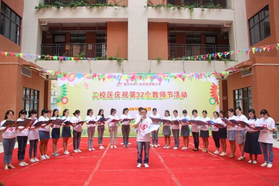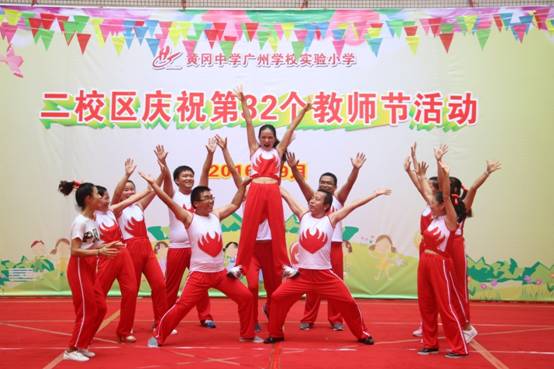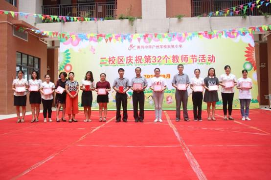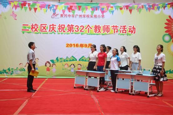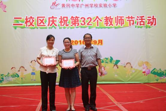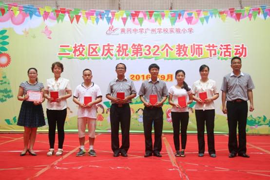 9月9日,黄广小学两校区以表彰和娱乐并举的方式,同时隆重举行庆祝第32个教师节茶话会活动。