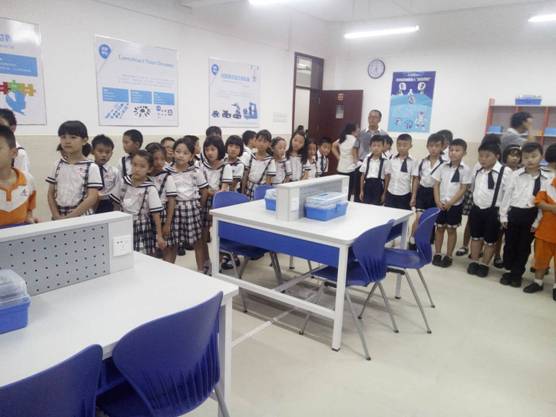 9月26日,广州市花都区黄广小学第二校区比特实验室(创客标准集成空间)经过前期精心筹备,首次与孩子见面,各年级学生分别在老师带领下进入参观。