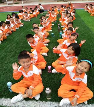 在班主任的带领下,孩子们个个精神抖擞地进入赛场,脸上洋溢着快乐的笑容。