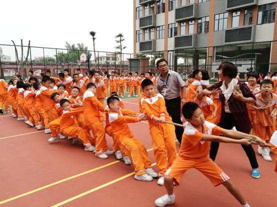10月11日下午,三年级全体师生在校篮球场上举行了“魅力十月”拔河比赛。