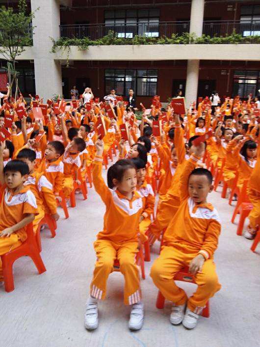 10月13日,虽然秋风微凉,却挡不住广州市花都区黄广小学一年级孩子积极加入中国少年先锋队的热情。