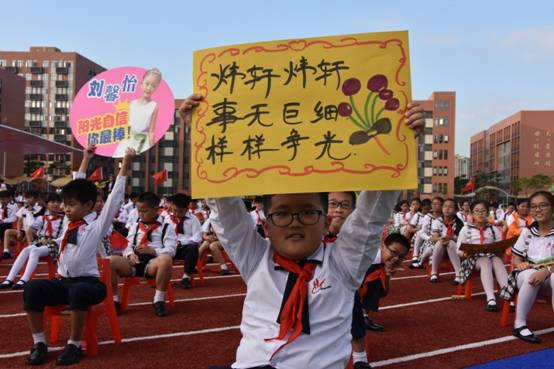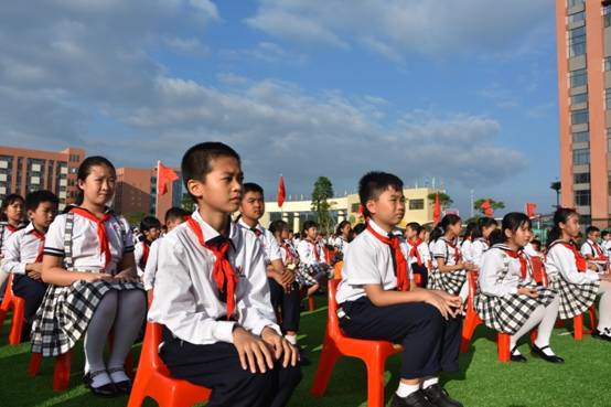 花都区少工委区总辅导员何龙老师和范小梁常务副校长、黄莉副校长分别为两校区少先队员提出了“从小学习做人、从小学习立志、从小学习创造”的要求,并向全体少先队员致以节日的问候,向为红领巾事业付出心血和汗水的所有少先队辅导员表示崇高的敬意。