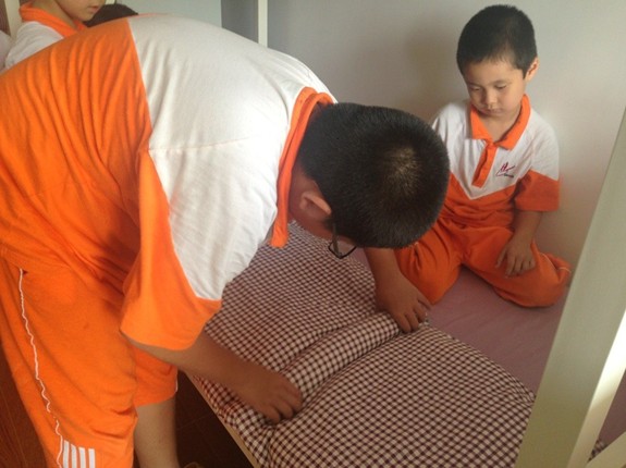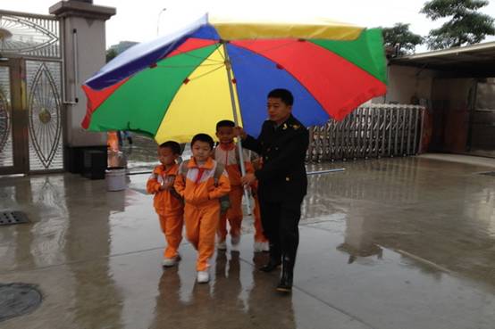 秋冬之交,细心的生活老师会在孩子运动后垫一块背心;当孩子出现偏食的时候,老师会耐心指导;当下雨的时候,校警叔叔撑着大花伞护送孩子进出校园等等......