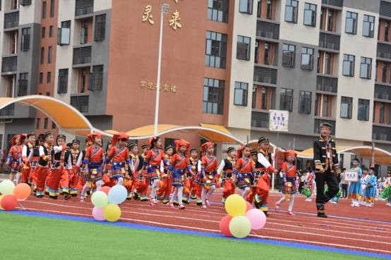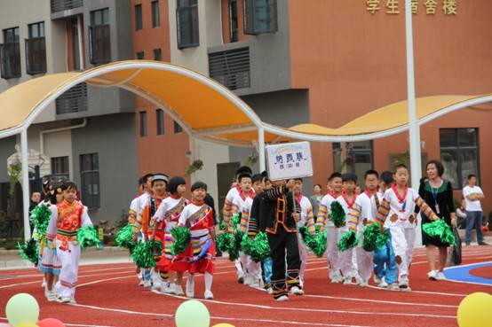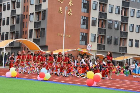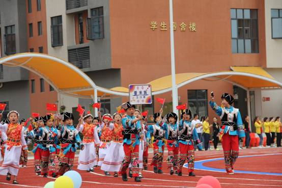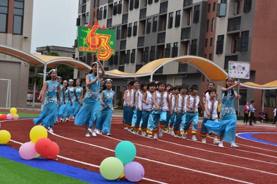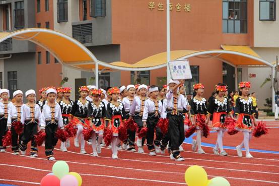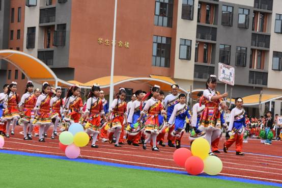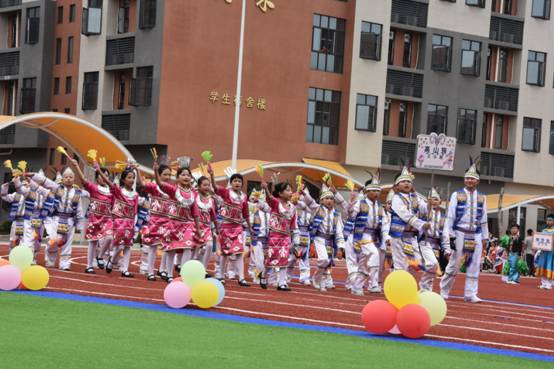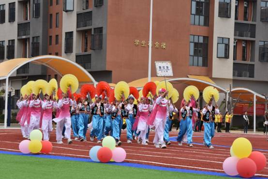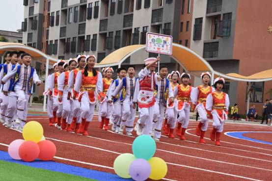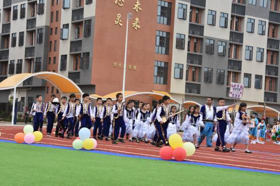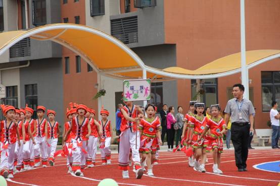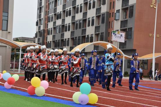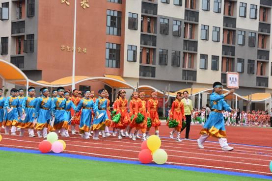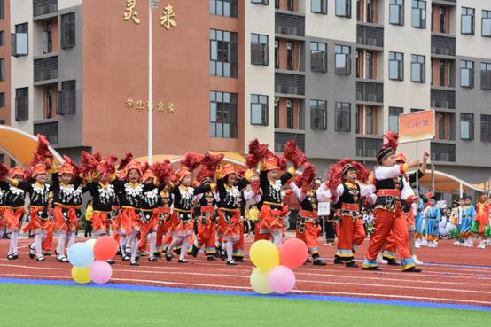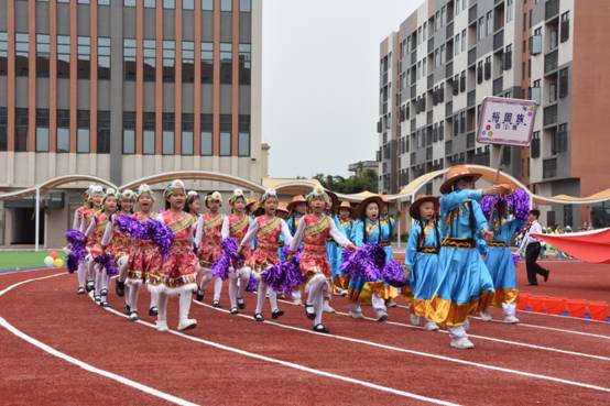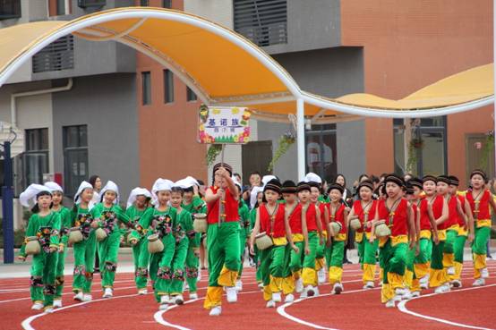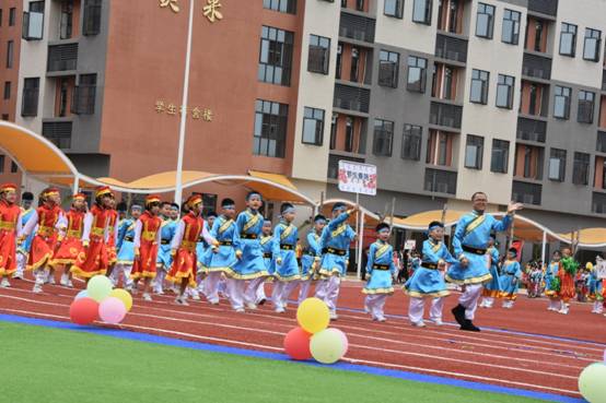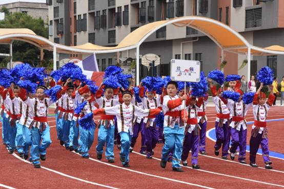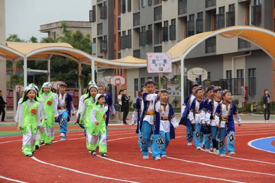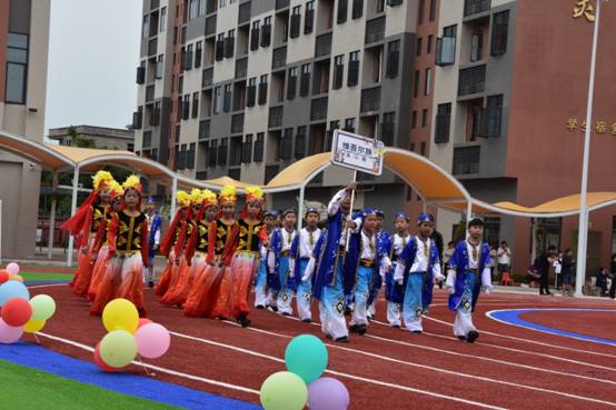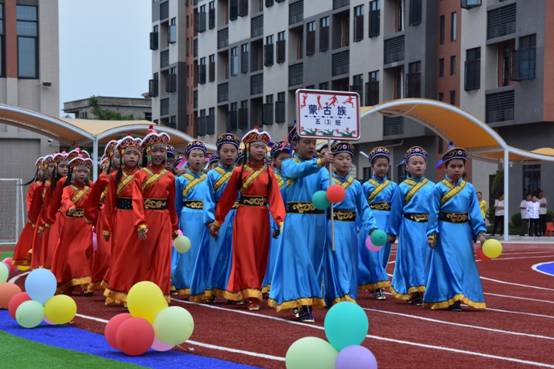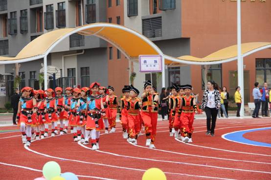 11月8日,广州市花都区黄广小学第二(花东)校区以“民族风采 魅力运动”为主题的第四届体育节开幕式上,各班为了彰显特色,通过广泛查阅资料挖掘民族文化、定做民族服饰和道具、编排民族舞蹈等方式,充分演绎民族文化与风土人情。
