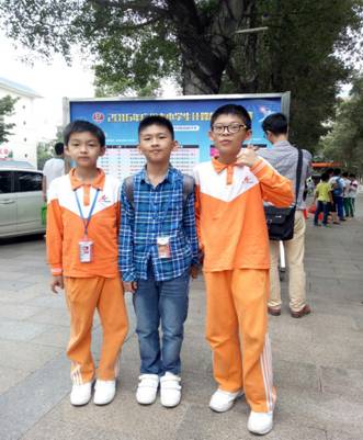 海珠区第六中学举办的广州市决赛中,黄广小学3名选手合影留念