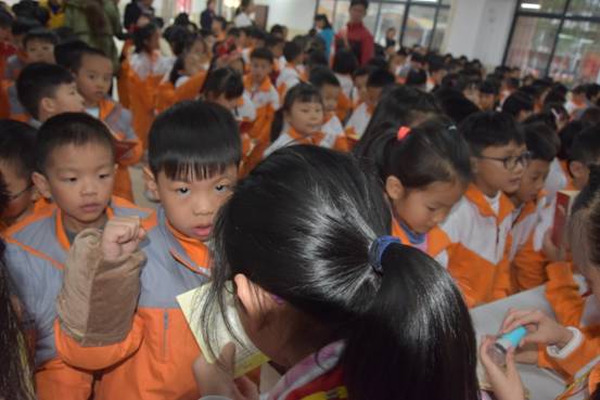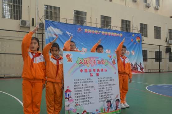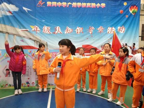 11月30日,广州市花都区黄广小学两校区同时举行了一年级“争队知识章”主题活动,近千名孩子积极参与,并顺利争得主题系列活动的第一枚勋章——队知识章,正式拉开争章入队活动序幕。